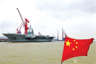 图① 首航前靠泊在码头的福建舰(4月30日摄)。新华社发 (蒲海洋 摄)
