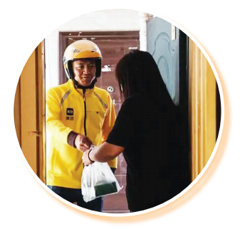 美团平台长春红旗街配送站站长王文思为客户提供服务。新华社记者 王 帆 摄