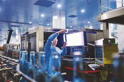5月2日,太原酒厂工作人员正在对酒液进行质检。该厂重视新技术运用,利用5G+机器视觉技术,将酒液AI质检设备安装在酒类灌装线上,大大提升了质检效率,保证了产品质量。米国伟 摄
