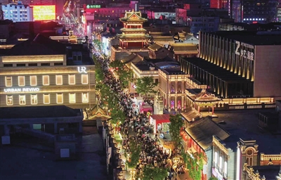 青砖灰墙、业态繁华的钟楼街上,游人熙熙攘攘。上万游客行走在千年古街中,感受这座城市自古繁华的气质,感受太原老字号与时尚潮流交融的魅力。据统计,5月1日,钟楼步行街区客流总计13万人次,与去年“五一”假期首日相比增长30%。