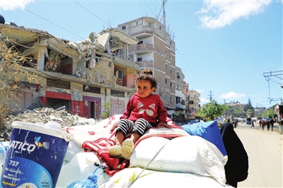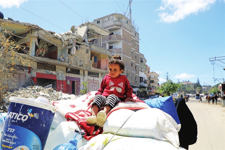5月6日,在加沙地带南部城市拉法,巴勒斯坦人离开家园。据巴勒斯坦通讯社7日报道,以色列军队当天凌晨起密集轰炸加沙地带南部城市拉法,目前已造成至少20人死亡。新华社发