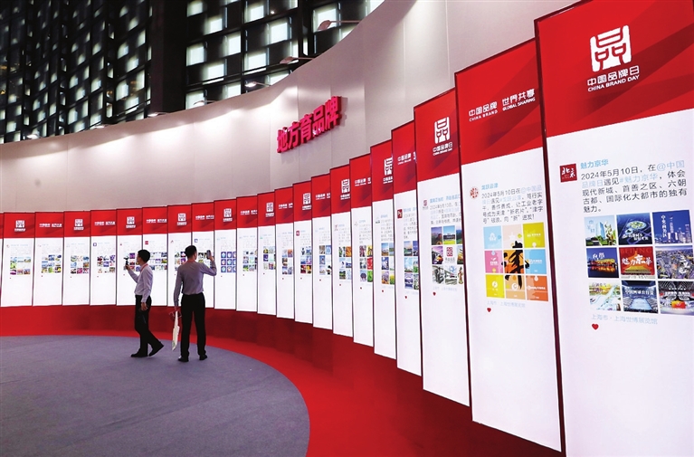 5月10日,参观者观看中国品牌博览会序厅内地方品牌展示板。新华社记者 方 喆 摄
