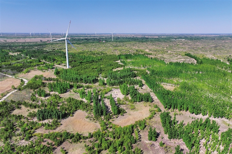今年以来,内蒙古通辽市全力推进“三北”工程,重点围绕科尔沁左翼后旗蒙辽界沙化草原、库伦旗塔敏查干沙带、奈曼旗老哈河和教来河沿岸沙带,打造“三北”工程科尔沁沙地歼灭战典型示范项目区。新华社记者 连 振 摄