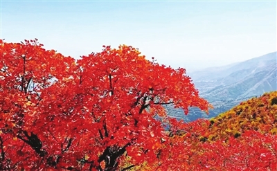 过了中秋节或国庆节,天气就慢慢变凉,正是太原不冷不热的秋季。这个时节太原人更偏好去爬崛山围山。崛山围山地处太原市西北方向,山上南有青峰,北有飞云峰。两峰高峻挺拔,中间夹一条东西走向的深沟,隔沟对峙。从山顶向下俯视,四周群山如涛似浪,宛转盘旋,形成一个巨大的漩涡,像是倒立的喇叭,又如硕大的圆盘,“崛山围”之名由此而来。唐贞元二年(786)崛山围山上建起古刹多福寺,明洪武年间重建。寺为三进院,头进院是大雄宝殿,二进院是藏经楼,三进院为千佛殿。崛山围山多福寺二进院藏经楼旁,有一砖券窑洞,这里是明末清初太原名士傅山的读书处。傅山故居就在崛山围山下不远处的西村。先生在年轻时期曾有一段时间居住在这里,不仅著书立说,而且行医布道,至今墙壁上还留有先生的书法真迹。“崛山围红叶”,也曾是“古晋阳八景”之一。深秋时节,崛山围山像是换了一身轻纱般的红装,如云如霞。站在山脚往上看,像是一张轻舒漫卷的红色地毯,从身边一直铺到山顶,把蓝天白云衬托得愈加娇美;站在山顶往下看,又像是千顷起伏翻卷的红色波浪,从山下一直向身边滚滚而来,仿佛要把人融化到这红色的海洋里。