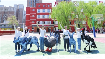 近日举行的2024年太原市全国低碳日主题宣传活动中,市萌芽环保协会联合万柏林一中,用废旧牛仔裤、塑料勺子、废旧布料以及多种多样的填充物等,制成褐马鸡、华北豹、原麝以及黑鹳等巨型立体环创作品,宣传绿色、节能、低碳环保的生活方式和生活习惯,引导公众身体力行参与应对气候变化、保护生物多样性行动。据了解,褐马鸡、华北豹、原麝以及黑鹳均为国家一级保护野生动物,被称为“山西四大旗舰物种”。