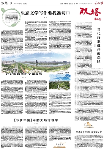 这就要求我们必须摆脱“人类中心主义”的偏执。树立《沙乡年鉴》所倡导的大地伦理学,放低人的姿态,不再以高高在上的俯视视角去写人间社会和自然万物,而要以融于其中的平视视角去观察与审视人与大自然,摒弃过去固有的主人与附庸、主宰与被主宰的关系,亲近自然、认识大地、了解地球,过一种符合人与自然、人与社会、人与人的内心和谐相处的生活。用作家自己的内心感受、情感感受与思想感受,去真正敬畏自然、尊重自然、顺应自然、保护自然,才是我们最重要、最本质、最自然的写作伦理。