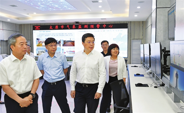 气象监测预报预警是防灾减灾的“前哨”。韦韬来到太原市气象监测预警中心,结合大屏听取全市气候概况、今年气象趋势及气象防灾减灾体系建设情况汇报,通过综合气象观测系统察看气温、风向、雨情等实时气象监测和临近天气预报预警,要求充分用好监测预警平台,完善气象灾害监测站网,紧盯中高考、端午节等重要节点、重要活动,加强极端天气预警研判,做到精密监测、精准预报、精细服务,不断提升气象监测预警能力,筑牢防灾减灾“第一道防线”。