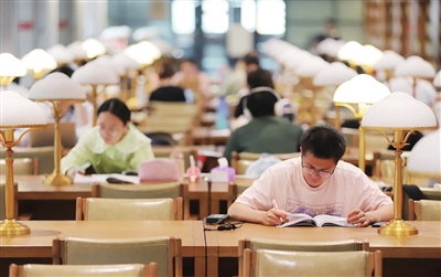 夏日,省图书馆内安静舒适的环境吸引了更多的读者。图为六月五日,读者在省图书馆内专心致志地读书。张昊宇 摄