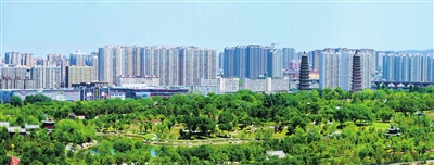 6月8日,郁郁葱葱的双塔公园与周边林立的高楼,构成一幅美丽的城市画卷。近年来,我市积极践行公园城市理念,打造以绿色为底色、以山水为景观、以绿道为脉络、以人文为特质、以街区为基础的人、城、境、业和谐统一的新型城市形态。邓寅明 摄