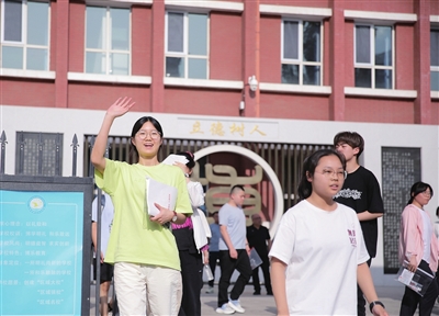 6月8日,高考结束后,太原市第三十八中学校考点,考生走出考场。王韵菲 摄