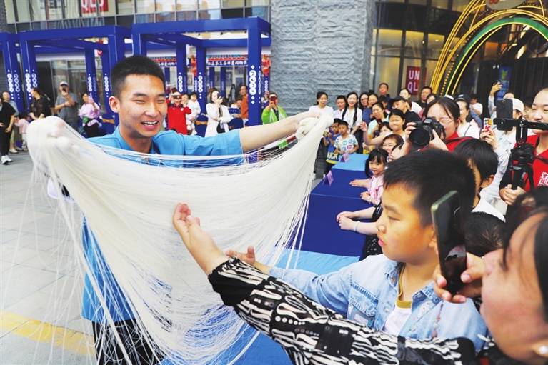 在现场,晋阳石画、绳结技艺、肖像剪纸、玉雕技艺、张氏彩泥塑、传统木板画技艺、刻瓷技艺、吉祥剪纸、钩织、鲁班锁设计制作技艺等20多个非遗项目各有特色,引得市民啧啧称赞。