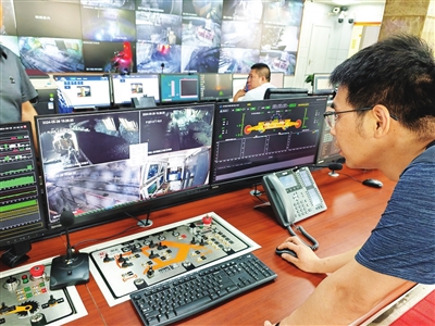 智能化采煤工作面单班减人30%,煤矿单工作面平均月进尺提高8米,智能化人工干预率降低至10%、产量提高2.5%……在山西省霍州市的山西焦煤集团李雅庄煤矿井上控制中心,综采队技术员邢阳阳通过一键启停控制按钮,就能够对井下综采面实现控制。