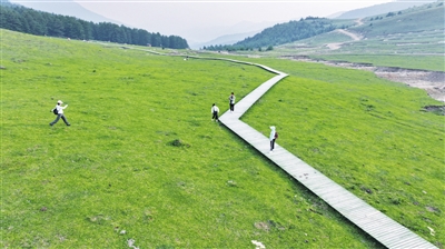 6月16日,游客在娄烦县云顶山徜徉。热播电视剧《我的阿勒泰》中的自然风光令人向往,云顶山以其独特的高山草甸风貌,成为游人享受“阿勒泰”式风光的避暑胜地。张昊宇 摄