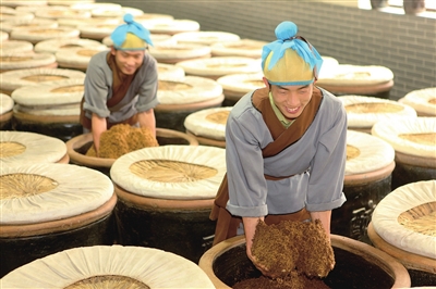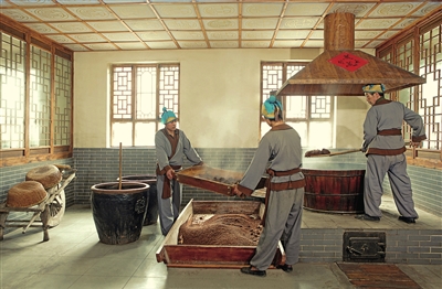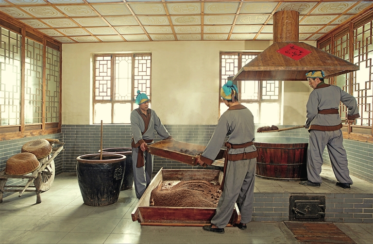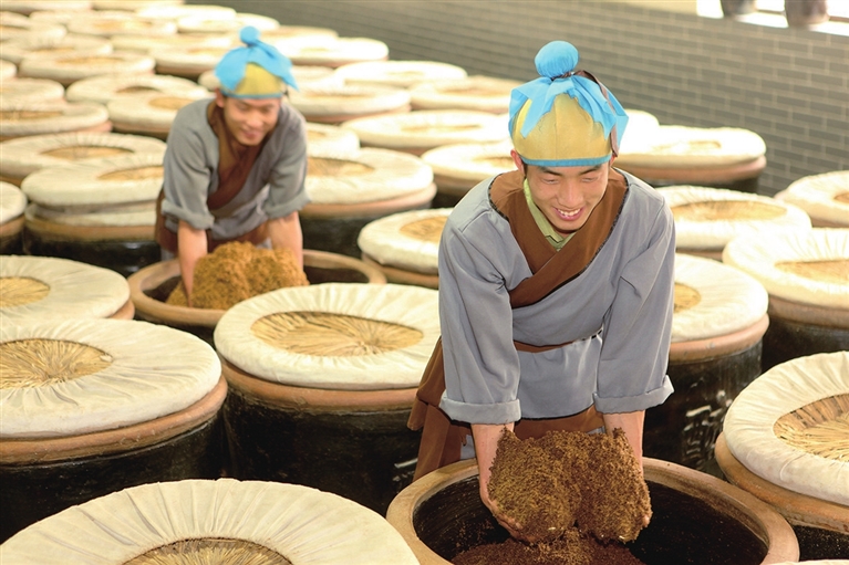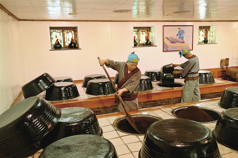 老醋坊内,阵阵醇香中,工人们神情专注,再现着“蒸、酵、熏、淋、陈”的环节;晾晒场上,炎炎日光下,大缸泛出古朴的光泽,等待着“夏伏晒”的检验。
