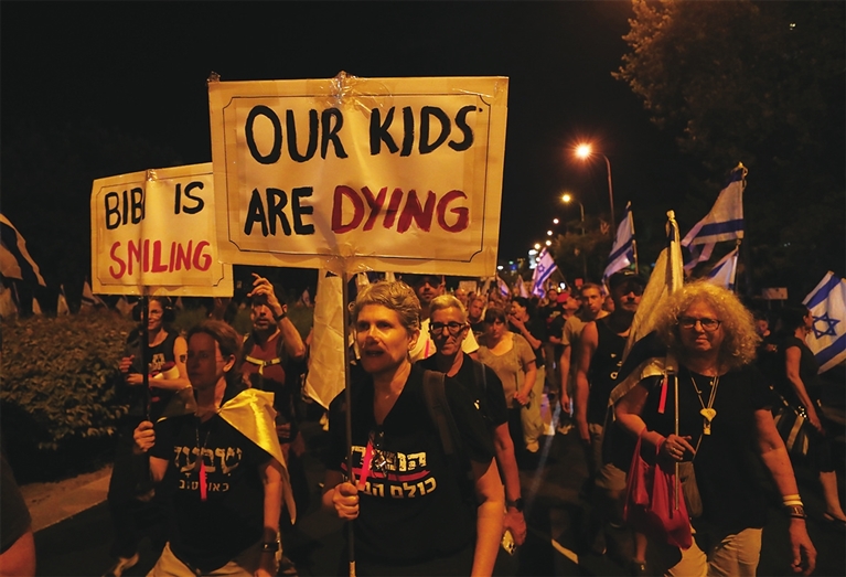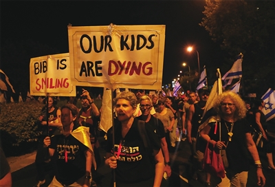 6月17日晚,耶路撒冷爆发大规模示威游行,示威者要求以色列政府与巴勒斯坦伊斯兰抵抗运动(哈马斯)达成协议,立即在加沙地带停火止战。新华社发 (贾马尔·阿瓦德 摄)
