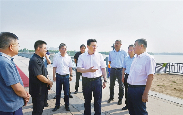 随后,韦韬主持召开座谈会,听取专家组污染成因分析和相关部门工作汇报,逐项研究防治举措。他指出,蓝天碧水既是发展之基,也是民生之要。要精准靶向发力。充分利用现代科技手段,时刻关注气象条件变化,科学分析污染物变化趋势,特别是紧盯重点区域、重点行业、重点企业、重点时段,加强动态监测,精确锁定污染源头,迅速形成问题清单和整改任务台账,限期“销号清零”,切实做到反应迅速、反馈顺畅、解决及时。要精细管理管控。深入开展建筑工地扬尘污染治理专项整治行动,深入开展尾气污染治理,纵深推进臭氧削峰攻坚行动,全力做好大气污染防治;加快“一泓清水入黄河”工程进度,实施污水处理设施改造提升,深化太榆退水渠等重点河渠治理,全域强化入河排污口溯源整治,有效削减汛期污染峰值,确保国考断面水质稳定达标。要精心组织落实。严格按照“三管三必须”要求,压紧压实属地责任、部门监管责任、企业主体责任;强化区域联防联控,加强部门、县区联合攻坚,形成齐抓共管的工作合力;正确处理环境质量改善与企业发展、就业民生的关系,坚决防止“一刀切”;严格督导检查,严厉打击各类环境违法行为,形成持续高压震慑,以最坚决的态度、最有力的措施打赢这场攻坚战、持久战。