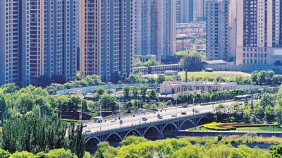 6月20日,汾河两岸绿色环绕,胜利桥上车流穿梭,展现了城市生态底色。邓寅明 摄