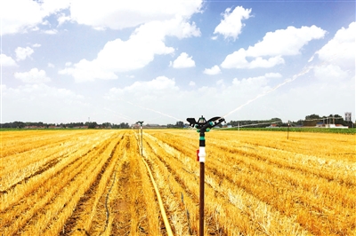 “先进的喷灌设备,持续保持土壤含水量,改变了以往播种前先浇水造墒的流程,提高了种子成活率,节约了水资源。”陕西省西安市长安区农业农村局副局长张群峰说,一系列节水灌溉措施让农民精准抗旱更从容。