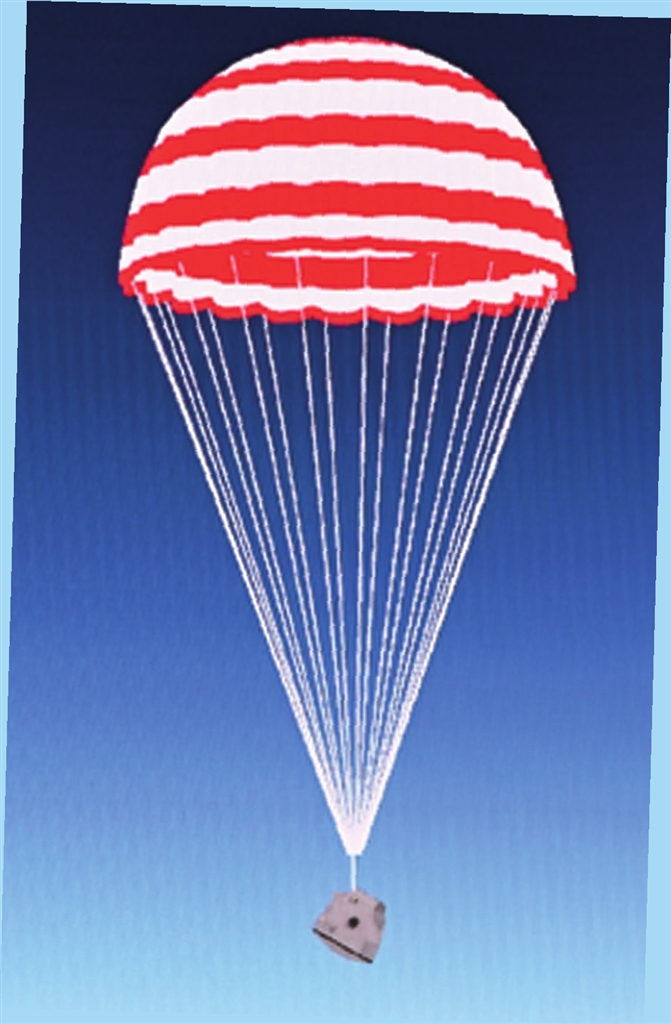 6月25日下午,内蒙古四子王旗阿木古朗草原,湛蓝的天幕之下,一顶红白相间的巨型降落伞缓缓落下,嫦娥六号返回器到家了!