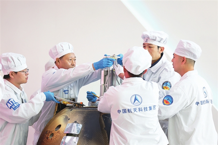 6月26日下午,嫦娥六号返回器开舱活动在中国航天科技集团五院举行。