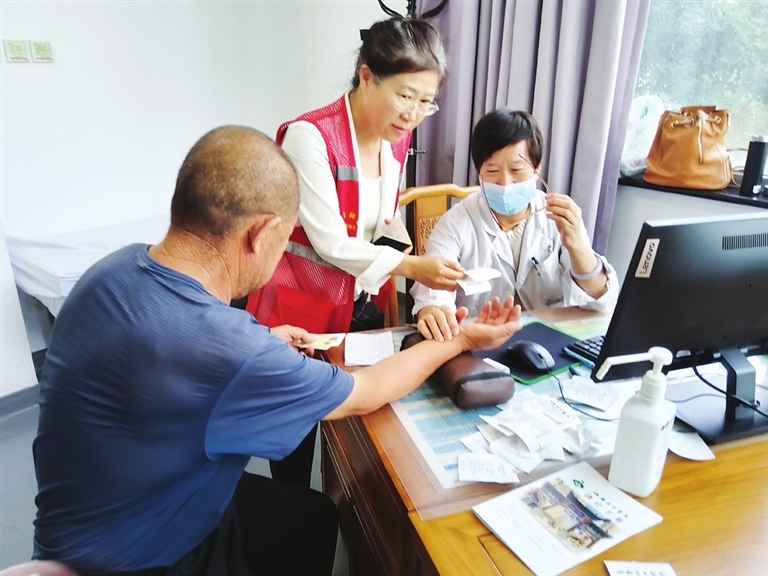 和泽苑社区网格员阎玉秀提前了解了老人的具体病情后,陪同老人前往省中医院胜利街分院就医。