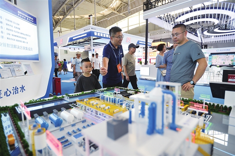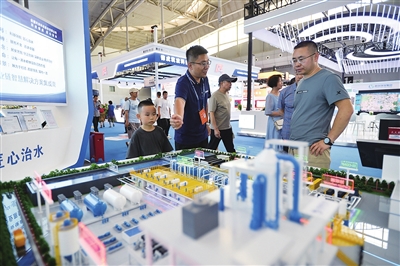 6月30日,在第八届中国—亚欧博览会上,新疆河润科技股份有限公司展台工作人员为观众讲解废水零排放及资源化解决方案。本届亚博会上展出新疆油气生产加工、煤炭煤电煤化工、绿色矿业、粮油、棉花和纺织服装、绿色有机果蔬、优质畜产品、新能源新材料等产业发展成果,受到国内外展商和参展者关注。新华社记者 李任滋 摄