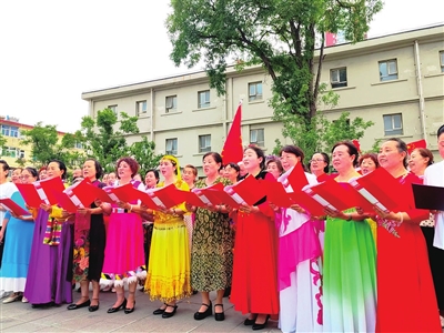 活动中,大家合唱了《我和我的祖国》《我爱你中国》《没有共产党就没有新中国》等10首歌曲,以激昂嘹亮的歌声,歌唱党的光辉历程,抒发对党的深情和美好祝福。“这次大合唱让我们这些退休的老同志们表达了对党的热爱,我们的业余生活也更加丰富了。”桑榆之声合唱团的指挥老师王维清说道。
