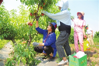 看着累累硕果,园区负责人张婷开心地介绍:“今年水蜜桃和杏子不仅长得繁,口感还特别好,很受大家欢迎!”
