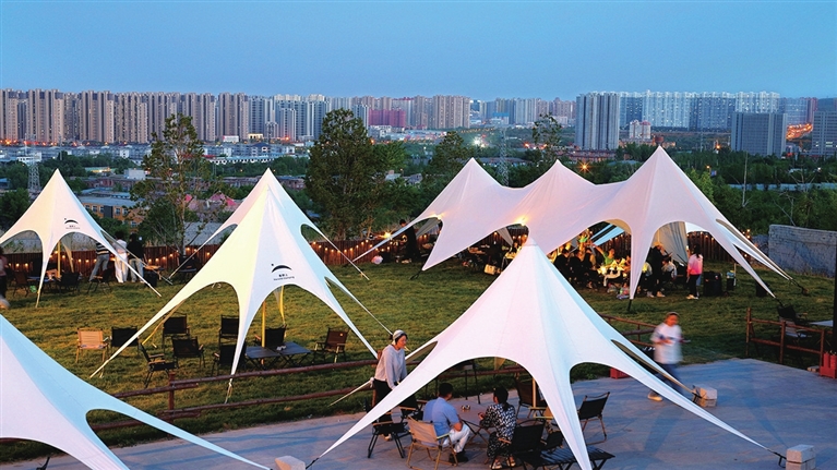 7月6日,市民在西山露营休闲,体验自然之美和露营之乐。近年来,我市户外露营持续升温,“露营+”的商业模式激发了城市的新活力。韩双喜 摄