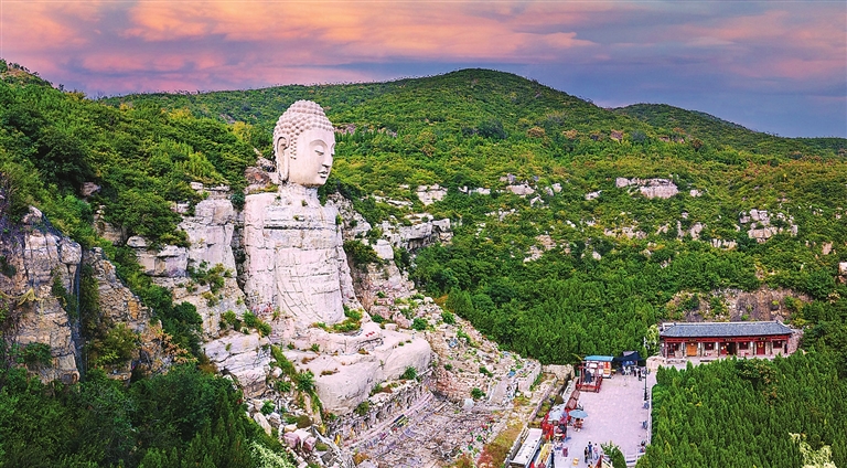 与晋祠毗邻的天龙山景区,集林、泉、寺、洞于一体,是一座历史文化名山,风景绝佳。天龙山石窟第8窟佛首,曾亮相央视春节联欢晚会,引发全国人民广泛关注。佛首的微笑,呈祥和、宁静、自然、质朴之态,给人极大松弛感,被誉为“天龙山的微笑”。天龙山网红公路也闻名天下,群山峻岭中,这条路如飞龙般盘旋,蜿蜒而上,非常壮观。
