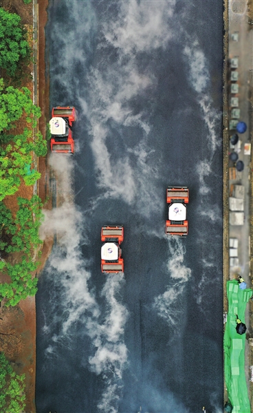 7月2日起,随着机械轰鸣声响起,迎泽大街南半幅(青年路口至五一广场路段)施工沥青下面层铺设工作正式开工。摊铺机满载着沥青砼缓缓前行,均匀地将黑色的混合料铺设在道路上。身着统一工装、佩戴安全帽的施工人员有条不紊地紧跟其后,各司其职,严格遵守安全操作规程,不惧炎炎烈日和地面高温,密切关注着铺设情况,确保沥青砼的厚度和温度达到施工规定标准。