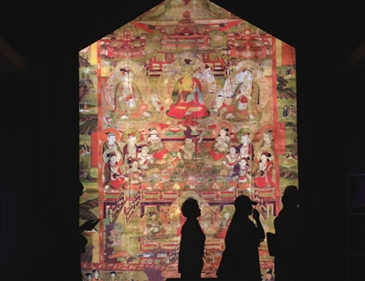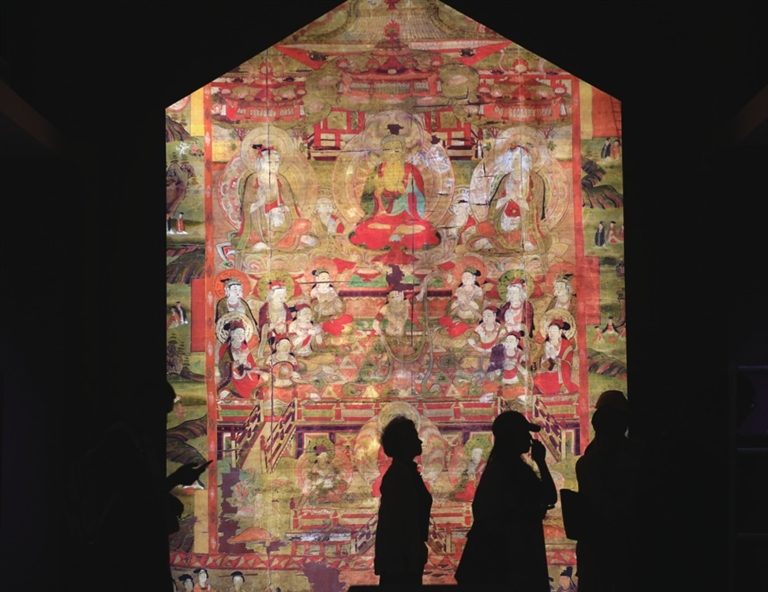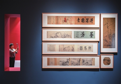 展览中,2000多幅凝聚着中国数千年历史文化的绘画珍品、散落在世界各地的传世瑰宝,以高清打样稿的形式重聚在“薪火相传 代代守护”“千古丹青 寰宇共宝”“表里山河 晋善晋美”三大板块之中。