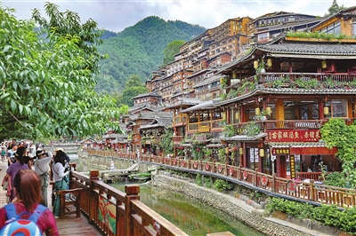 当日,位于贵州省雷山县的世界最大苗寨——西江千户苗寨迎来暑期旅游高峰,据景区统计,当日接待游客人数已达2.35万余人次。新华社记者 刘 续 摄