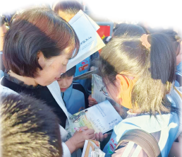 时间就这样,在一本本书、一行行字中飞逝,轮到了最后一个孩子,他名叫佳轩,一直等到同学们散去,才拿着一张纸,来到我面前。我想起他就是活动现场第一个勇敢说出自己心愿的学生,于是在纸上写道:“亲爱的佳轩,英雄,不一定要流血牺牲,希望你好好学习,将来用聪明才智报效祖国。”