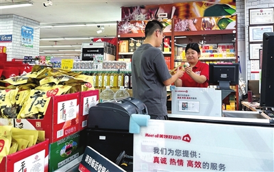 傍晚时分,70多岁的赵阿姨走进家门口的金虎便利,点开支付宝,扫描二维码领取红包后,愉快地选购货物。领券、刷脸支付、攒会员积分等一系列动作,王阿姨早已在工作人员指导下驾轻就熟。