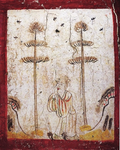 屏风画“树下人物图”位于整个墓室的主位,是墓葬壁画中最核心的部分,而这一位置通常为墓主画像之所在。墓室中出现墓主画像自古有之,也是历代较为流行的题材,此点无需赘述。但为何到了唐代,墓主画像这一题材“不再流行”?纵观历史,也仅仅是唐代“不流行”,这一现象值得思考。