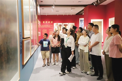 观展的队伍里,二刷、三刷者不少。他们有的凑近画作细细观察,有的围在画作下听其中的故事,更有甚者凝视画作许久,犹如置身画中。“大开眼界”“家门口一定要看的展览”“一场穿越时空的震撼之旅”……现场观众的褒奖不绝于耳,涌动着对中华传统文化的兴趣与热爱。