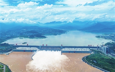 7月16日,长江流域进入“七下八上”防汛关键期。日前,长江委发出调度令,调度三峡水库增开泄洪孔至9孔泄洪,加紧腾库。新华社发 (郑家裕 摄)