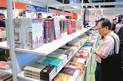 记者在现场看到,内地出版展区设立主题精品图书展,集中展示介绍中国特色社会主义实践的主题图书和承载中华优秀传统文化核心思想理念、中华优秀美德、中华人文精神的古代典籍和文化类丛书、套书等。