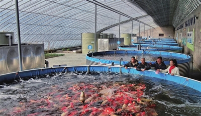 啥是鱼菜混养?鱼棚的对面就是菜棚,养鱼的水经过处理直接成为种菜的肥料,既养鱼又种菜,不影响产量还能节水节肥。“鱼菜共生”的混搭模式真正实现了养鱼不换水,种菜不施肥。