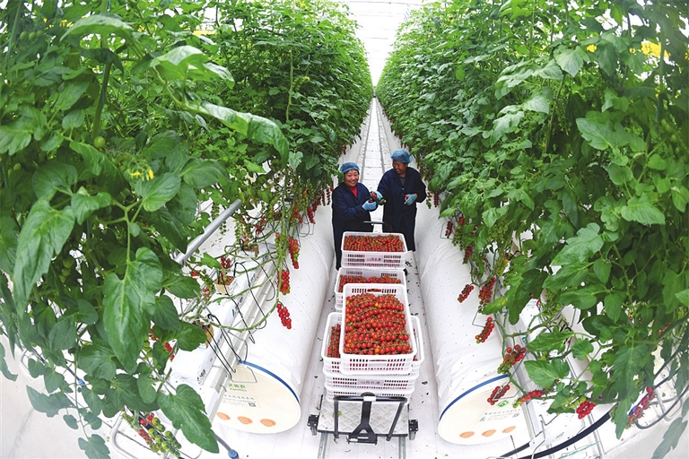 天色微亮,小店区刘家堡乡王吴村的菜农便走进设施农业天桥棚,采摘当天成熟的新鲜西红柿,随后打包、装车。早上7时许,这些口感沙甜的当季西红柿,便出现在太原市的各大集贸市场。