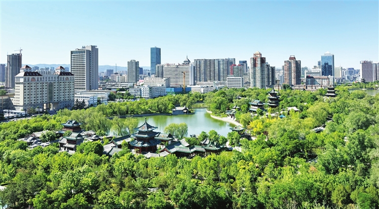 7月19日,我市天气晴朗,碧空如洗,迎泽公园内水波荡漾、草木葱茏,一幅美丽的城市生态画卷跃然眼前。邓寅明 摄