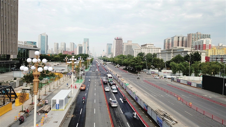 一、保留原有树木,彰显城市记忆。按照“尊重历史、尊重现状”的原则,市园林局协调优化各种管线位置,尽最大努力保护原有乔木,比如南半幅原有国槐305株,保留了281株,占比92.1%;北半幅原有国槐330株,计划保留308株,占比将达到93.3%。对确需移植的树木,一一编号,移植至晋阳湖公园、轨道交通站外绿地等处,并对成活率、使用效果、养护管理进行跟踪。