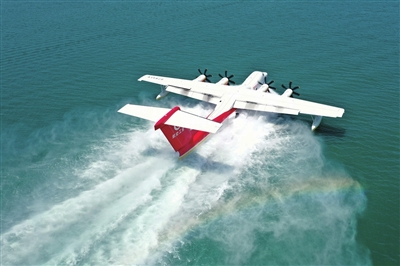 AG600飞机在湖北荆门市进行水上试飞(资料照片,2023年4月26日摄)。记者从中国航空工业集团有限公司获悉,7月23日,大型灭火/水上救援水陆两栖飞机“鲲龙”AG600获签首个型号检查核准书(TIA),标志着AG600飞机正式进入中国民航局审定试飞阶段,为后续AG600完成适航取证奠定了坚实基础。新华社发