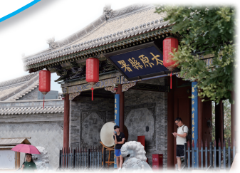 继续沿着凤城东街向西前行,隐隐传来阵阵击鼓之声,鼓大声远,鼓声隆隆。那激昂的鼓声在太原古县城内回荡,仿佛将人带到了古战场的对阵之中,让人热血沸腾、心潮澎湃。循声走去,前方不远处便是鼓楼,鼓楼高大雄伟,飞檐翘角。鼓楼之后有察院,察院之后壮观肃穆的太原县衙,曾是太原县地方行政长官行使职权的场所,建筑规模宏大,布局严谨。