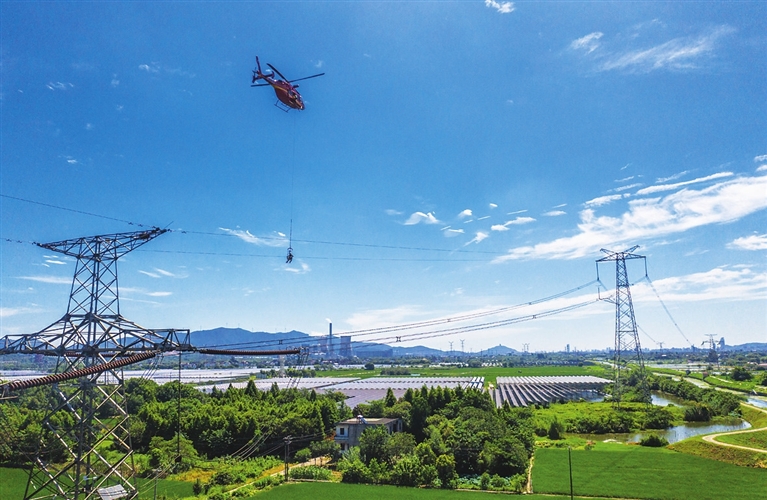 当日,国家电网采用直升机带电作业方式,对线路全长1000多公里的超特高压线路±500千伏宜华线、葛南线进行线路检修,保障三峡电力外送和西电东送重要输电通道平稳运行。