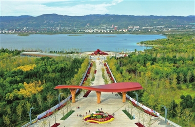 太原九水环绕,一湖点睛。俯瞰晋阳湖,水面宽阔,烟波浩渺,草木葱郁,野鸭游弋。这是华北地区最大的人工湖,目前,晋阳湖与风峪河连通工程正在紧锣密鼓地推进。河湖连通后,引来活水,打造景观,河湖互济,太原水景更加养眼、更加丰富。