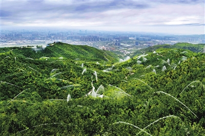 凿壁开路、挖坑换土,手提肩扛树苗、铺设滴灌管道,在外国专家直呼“不可能”的悬崖峭壁上,钻出了一棵棵茁壮的枝干,建起了纵横交错的防护林带。这是玉泉山,昔日开山取石、千疮百孔,经过奋斗者的拼搏,矿坑废墟变成了绿水青山。