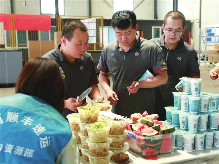 另外,各个网点已经配备了藿香正气水、风油精等防暑药品,并准备了充足的绿豆汤、西瓜、冷饮,供有需要的快递员使用。(李 涛、杨惠斌 文/摄)