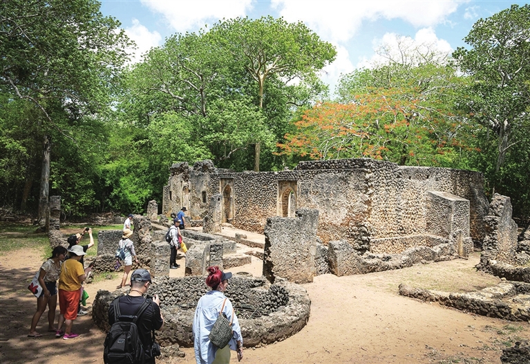 2023年4月15日,人们在肯尼亚基利菲郡参观格迪古城遗迹(资料照片)。新华社记者 韩 旭 摄